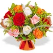 Осенний поцелуй - букет из разноцветных роз и солидаго